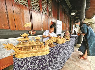 寧波主會(hui) 場“運河市集”展示龍舟雕刻技藝。唐嚴(yan) 攝
