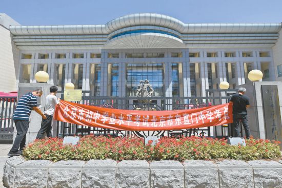 2022年北京中考今天開考,本市18個(ge) 考區各類中考考點已全部準備就緒。昨天,作為(wei) 中考考點的北京東(dong) 直門中學完成布置工作。本報記者 潘之望攝
