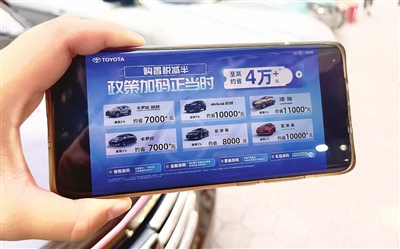 采訪中,多家4S店的銷售人員表示,最近看車的人很多,大家都在問購置稅減半的問題。銷售人員指著一輛卡羅拉向記者介紹,這輛車廠家指導價(jia) 為(wei) 12.78萬(wan) 元,其中購置稅原本要1.3萬(wan) 元左右,現在客戶隻需要交6500元左右。同時最近還有數字人民幣相關(guan) 推廣活動,預計可以再優(you) 惠2000多元,加上廠商優(you) 惠,總體(ti) 算下來花費約11萬(wan) 元。