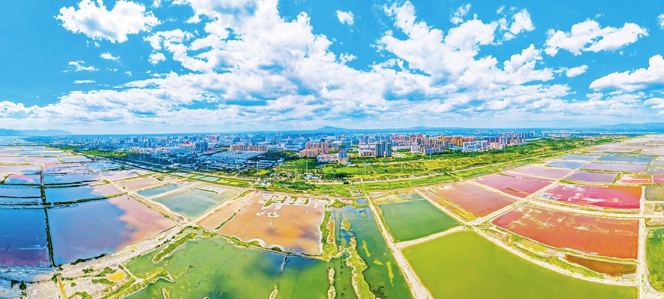 6月28日,運城市中心城區,藍天白雲(yun) 與(yu) 七彩鹽湖交相輝映,美不勝收。近年來,運城市緊緊圍繞綠色發展理念,加強鹽湖生態資源的保護和修複,將鹽湖打造成生物多樣的生態空間、風光旖旎的旅遊目的地、愜意舒心的居民休憩地。(陳方斌攝)