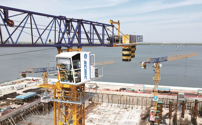 中建二局上海臨(lin) 港西島金融中心項目複工。