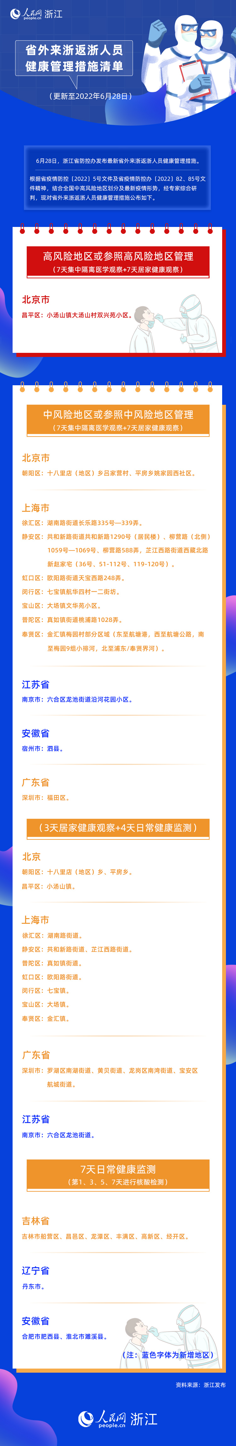省外來浙返浙人員健康管理措施(6月28日更新)