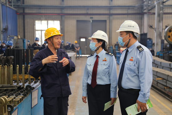 國家稅務總局石家莊市新華區稅務局工作人員到企業(ye) 實地了解企業(ye) 經營情況。劉靜攝