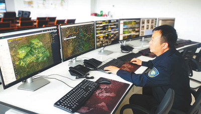 地麵,坐在電腦屏幕前,可將浩瀚森林和廣袤草原盡收眼底,通過視頻監控係統實時監控林場花草樹木的安全;