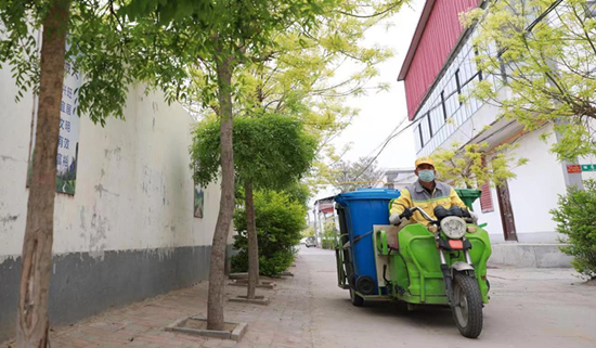 任澤區小屯村保潔員在收集垃圾。 宋傑攝