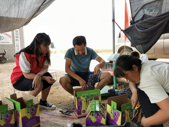 隆堯縣東(dong) 良鎮安中村,利用“鄉(xiang) 村振興(xing) 貸”種植的大棚葡萄喜獲豐(feng) 收,種植戶正在包裝。 任學麗(li) 攝