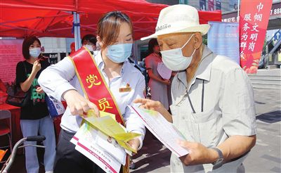 7月13日上午,天津市和平區濱江道樂(le) 賓百貨門前,市第十二次黨(dang) 代會(hui) 精神宣講展位彩旗招展,群眾(zhong) 絡繹不絕。來自衛健、科技、政法、交通、公共服務、社會(hui) 組織等方麵50多個(ge) 各級各類的為(wei) 民服務窗口型“巾幗文明崗”“巾幗建功先進集體(ti) ”誌願者齊聚,以學習(xi) 宣傳(chuan) 貫徹市第十二次黨(dang) 代會(hui) 精神暨“迎盛會(hui) 、鑄忠誠、強擔當、創業(ye) 績”巾幗文明崗為(wei) 群眾(zhong) 服務活動為(wei) 主題,開展多項便民服務。