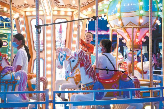 昨晚,北京經開區大族廣場室外區域熱鬧非常,市民趁著夜色來這裏吃飯、購物、遊玩,廣場上的遊樂(le) 設施前人頭攢動,孩子們(men) 在家長陪同下快樂(le) 玩耍。本報記者 和冠欣攝