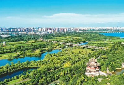 圖一:藍綠交織的永定河北京豐(feng) 台段。本報記者 賀 勇攝