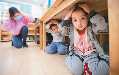 圖四:江蘇省南京市雨花台區龍福幼兒(er) 園小朋友們(men) 學習(xi) 防災減災自救技能。蘇陽攝(人民視覺)