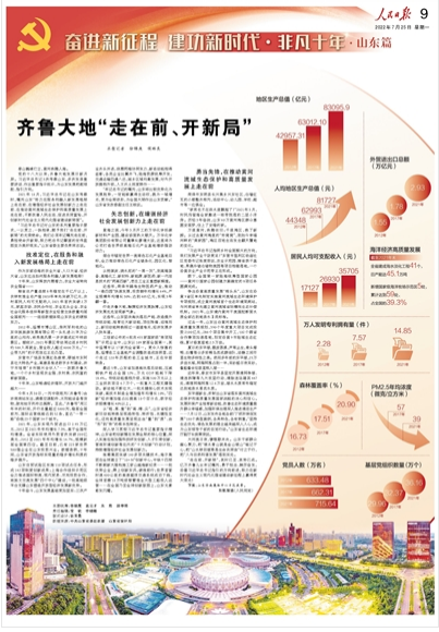 十年奮鬥,山東(dong) 發展基礎更加堅實:三次產(chan) 業(ye) 齊頭並進,供需兩(liang) 端協同發力,新老動能相得益彰,各類企業(ye) 比翼齊飛,陸海資源統籌開發,交通運輸四通八達,城鄉(xiang) 區域均衡發展,對外開放提檔升級,人文沃土深度耕作……