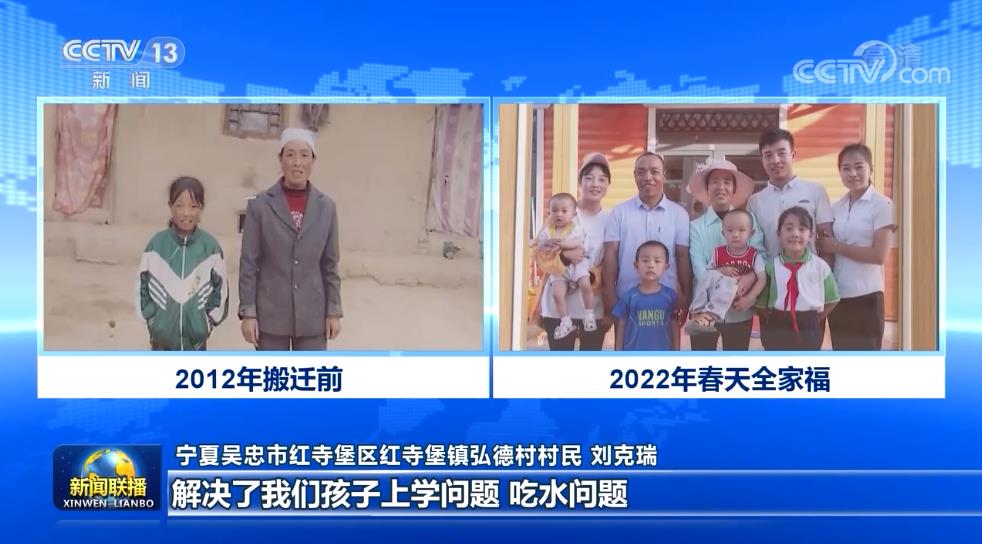 寧夏吳忠市紅寺堡區紅寺堡鎮弘德村村民 劉克瑞:我們(men) 一家人從(cong) 南部山區搬到了紅寺堡。解決(jue) 了我們(men) 孩子上學問題、吃水問題,就業(ye) 也很方便,醫院也在家門口,一年下來,我們(men) 家毛收入就達到了12萬(wan) (元)左右,過上了幸福美好的新生活。