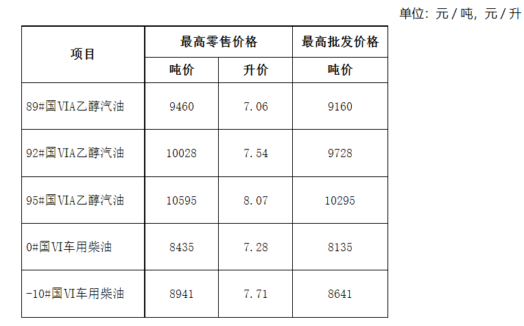 安徽省汽柴油最高零售和批發價(jia) 格表