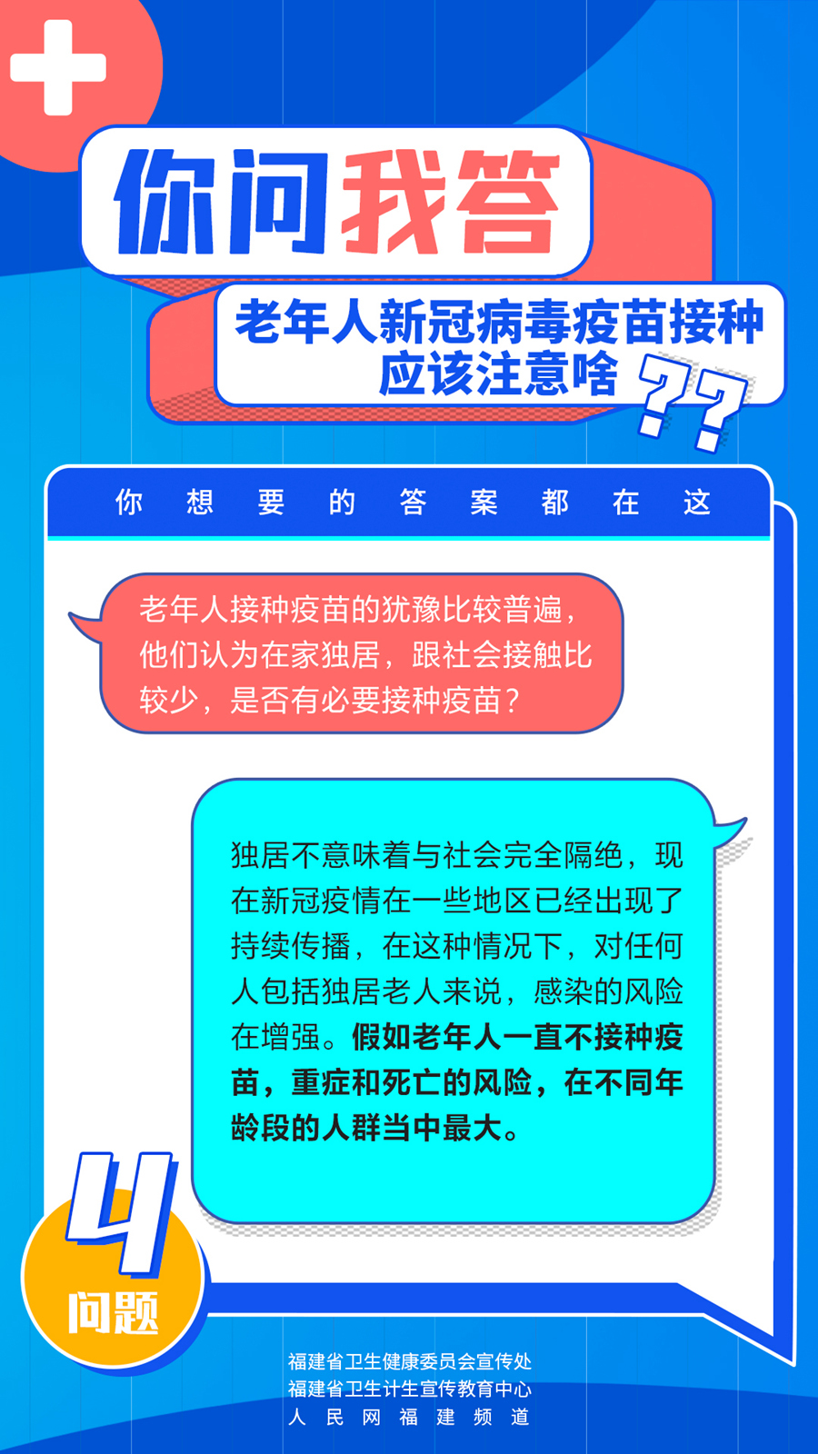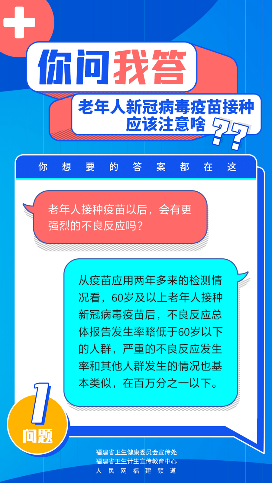 老年人接種疫苗是否安全?會(hui) 有更強烈的不良反應嗎?哪些老年人群不適合接種新冠病毒疫苗?你問我答,快問快答!老年人新冠病毒疫苗接種究竟應該注意啥?