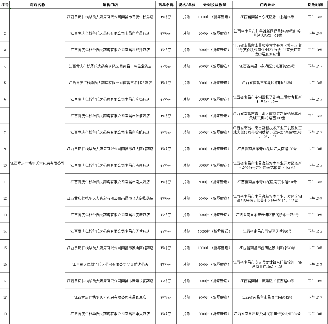 據悉,本期投放共計拆零贈送20.6萬(wan) 片(粒),銷售1200盒。消費者可根據自身需求,前往就近的門店購買(mai) 或領取。本次公布藥品信息將於(yu) 12月22日投放,請關(guan) 注具體(ti) 投放時間(見詳下表)。