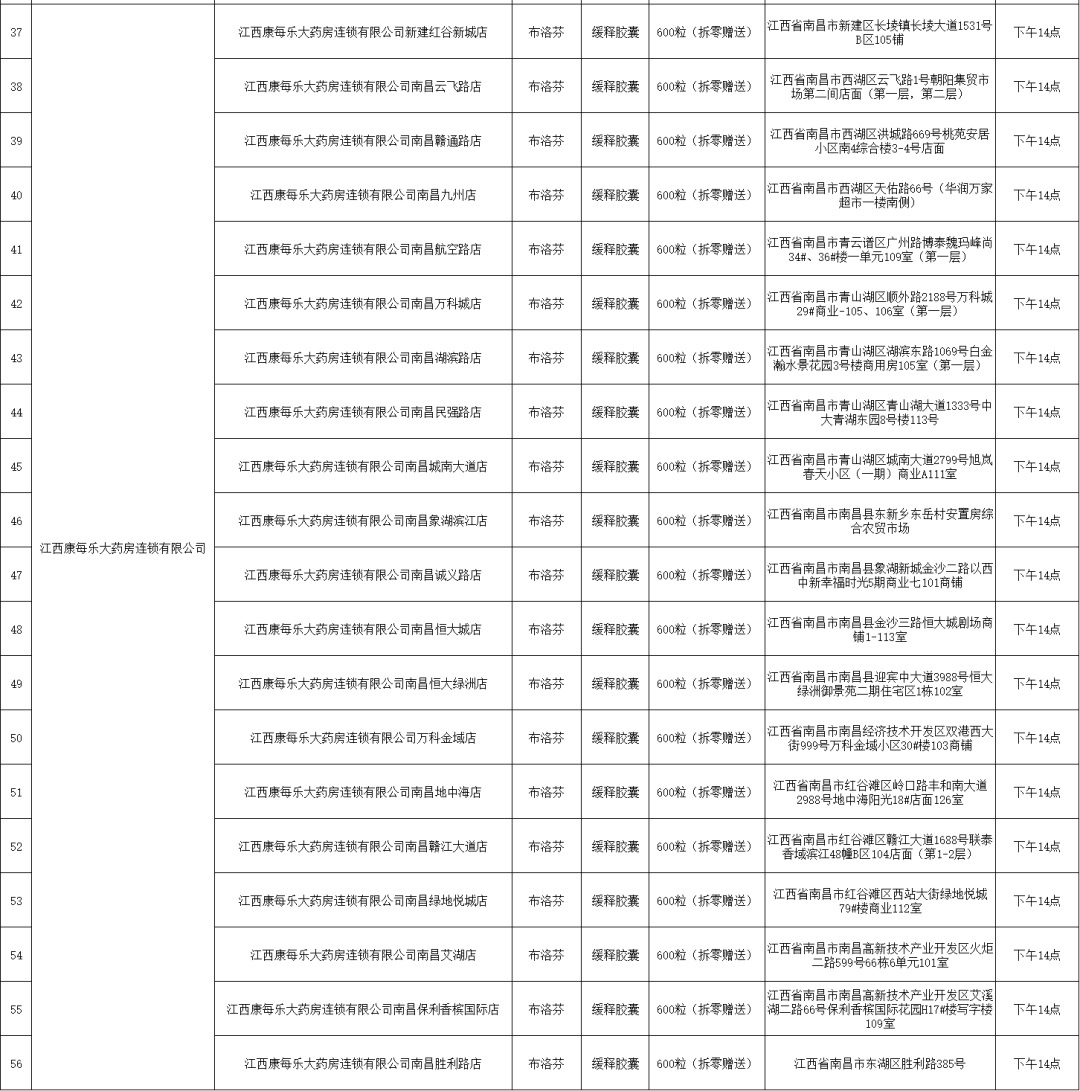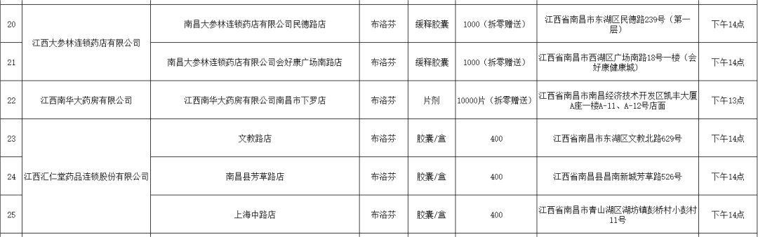 21日,南昌市市場監督管理局公布退熱藥品投放名單(第二批),本批次名單共公布7家藥品零售企業(ye) 共56家藥店的退熱藥品投放信息,分別是:江西黃慶仁棧華氏大藥房有限公司、江西大參林連鎖藥店有限公司、江西南華大藥房有限公司、江西匯仁堂藥品連鎖股份有限公司、江西昌盛大藥房有限公司、江西益豐(feng) 大藥房連鎖有限公司、江西康每樂(le) 大藥房連鎖有限公司。