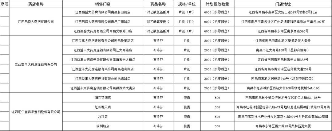 南昌公布21日發熱藥品投放名單(第一批)