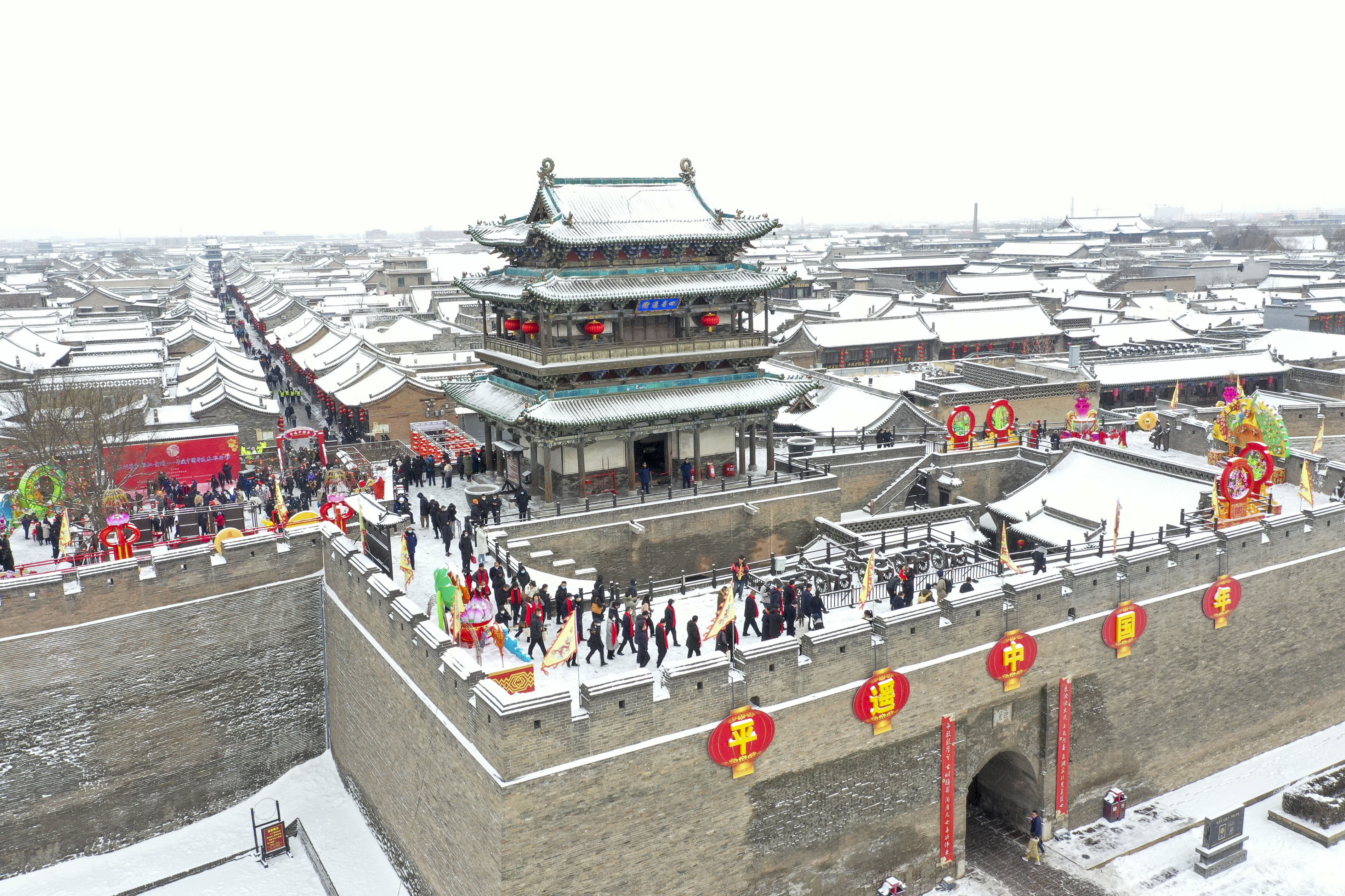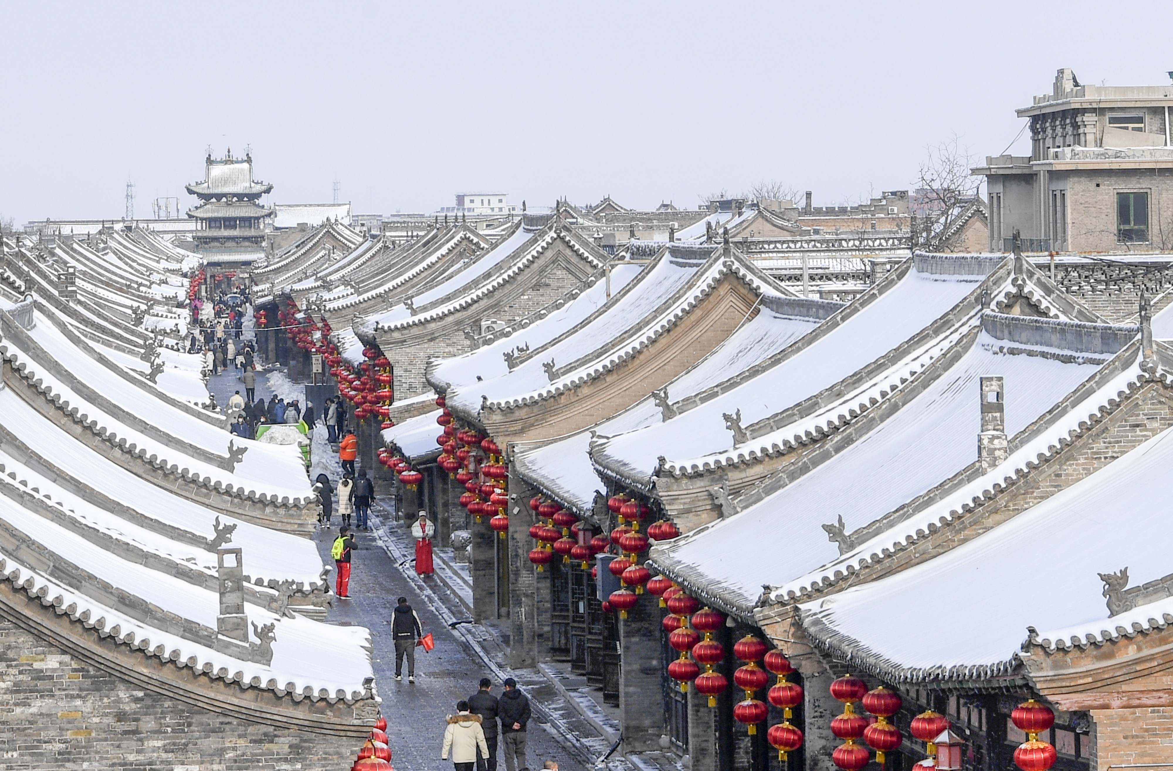 1月14日,山西省晉中市平遙縣迎來入冬以來首場降雪,雪中的平遙古城銀裝素裹,美景如畫。當日,恰逢2023年“我們(men) 的節日·春節——平遙中國年”活動在這裏啟幕,來自各地的遊客在雪中遊覽古城,別有一番韻味。(梁生仁攝)