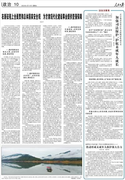在新征程上全麵貫徹總體國家安全觀 為甘肅現代化建設事業提供堅強保障