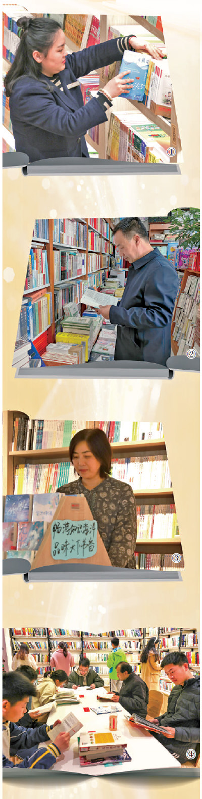 圖①:江蘇省淮安書(shu) 房盱眙店主管張慧琳在整理書(shu) 籍。許昌銀攝