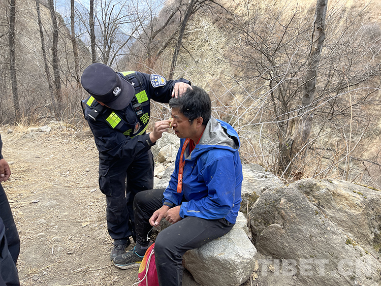 圖為(wei) 派邊境派出所民警找到走失遊客並為(wei) 其處理傷(shang) 口