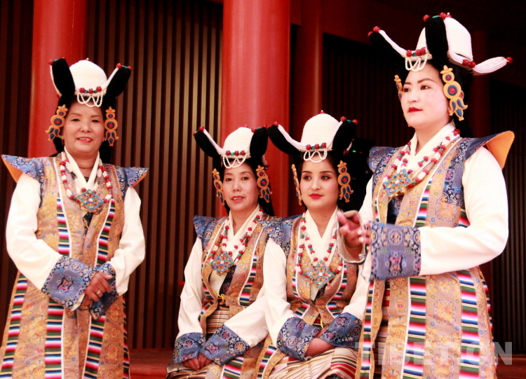 圖為(wei) 拉薩市城關(guan) 區娘熱民間藝術團演員表演國家級非物質文化遺產(chan) “嘎爾”攝影:劉莉