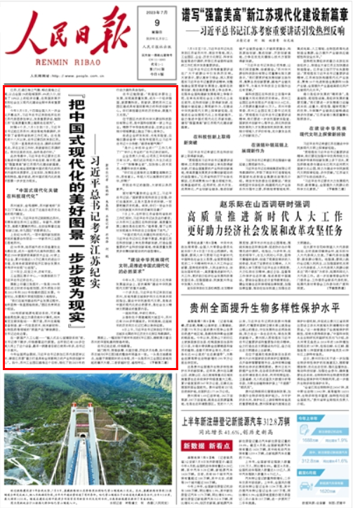 《人民日報》 2023年07月09日 第 01 版版麵截圖