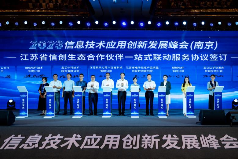 8月22日,2023信息技術應用創新發展峰會(hui) 在南京開幕。作為(wei) 南京軟博會(hui) 重要活動之一,本次峰會(hui) 以“信心引領 創造機遇 引航未來”為(wei) 主題,聚焦信息技術應用創新生態建設。會(hui) 上,15家單位簽訂江蘇省信創生態合作夥(huo) 伴一站式聯動服務協議。