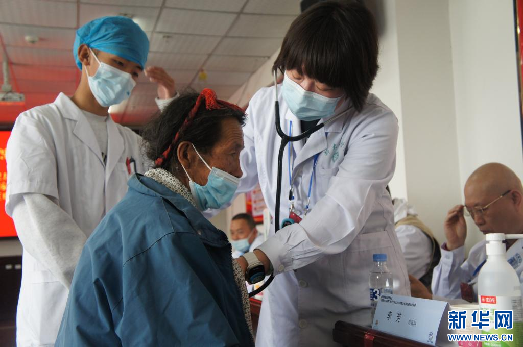 8月18日,在阿裏地區措勤縣曲洛鄉(xiang) ,鄉(xiang) 衛生院醫生巴桑卓瑪為(wei) 一名老人測量血壓。新華社記者 張汝鋒 攝