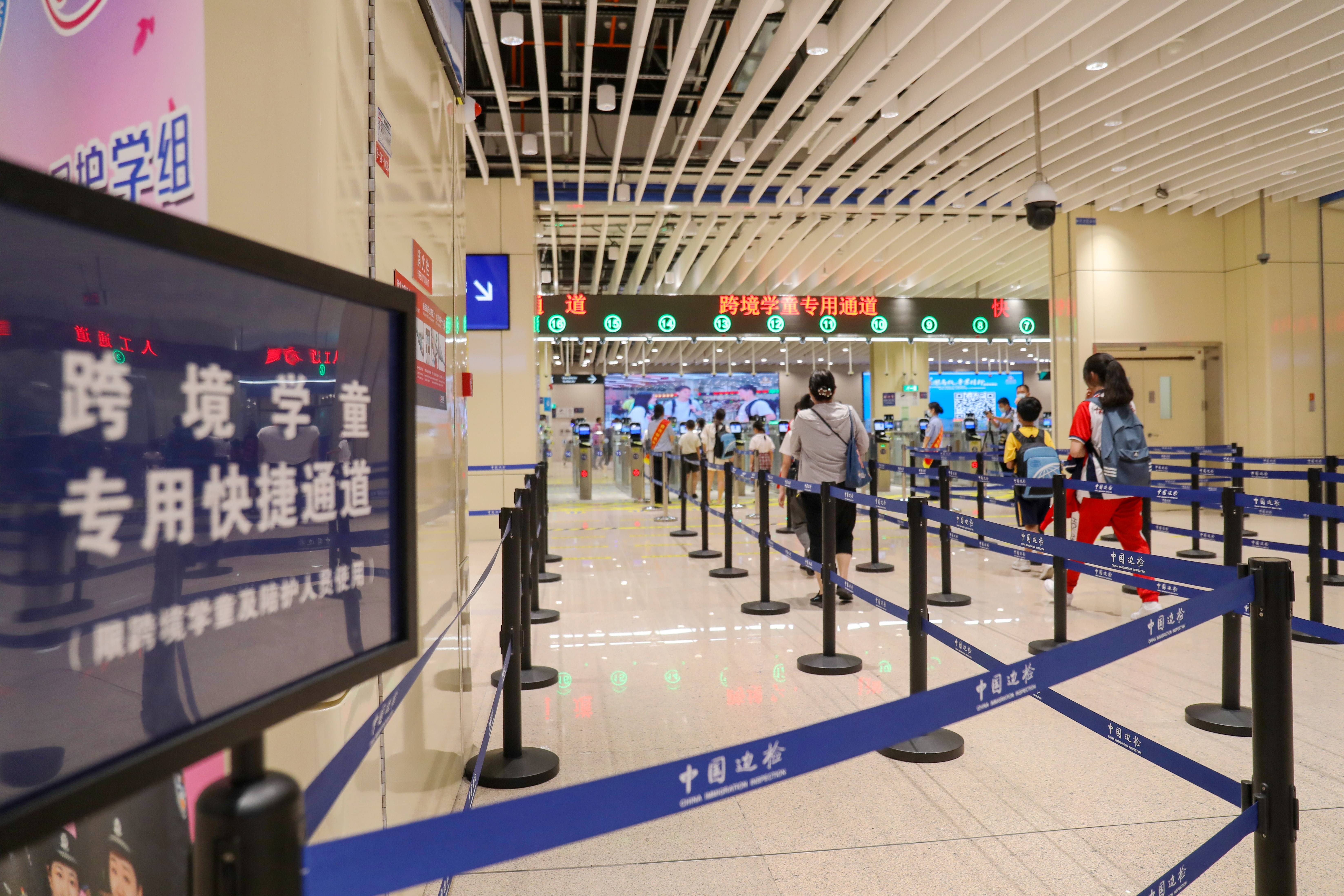 橫琴口岸旅檢大廳學童通道迎來了新學期入學的跨境學童。珠海邊檢總站供圖