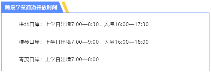 跨境學童通道開放時間。圖片來源:珠海邊檢總站官方微信截圖
