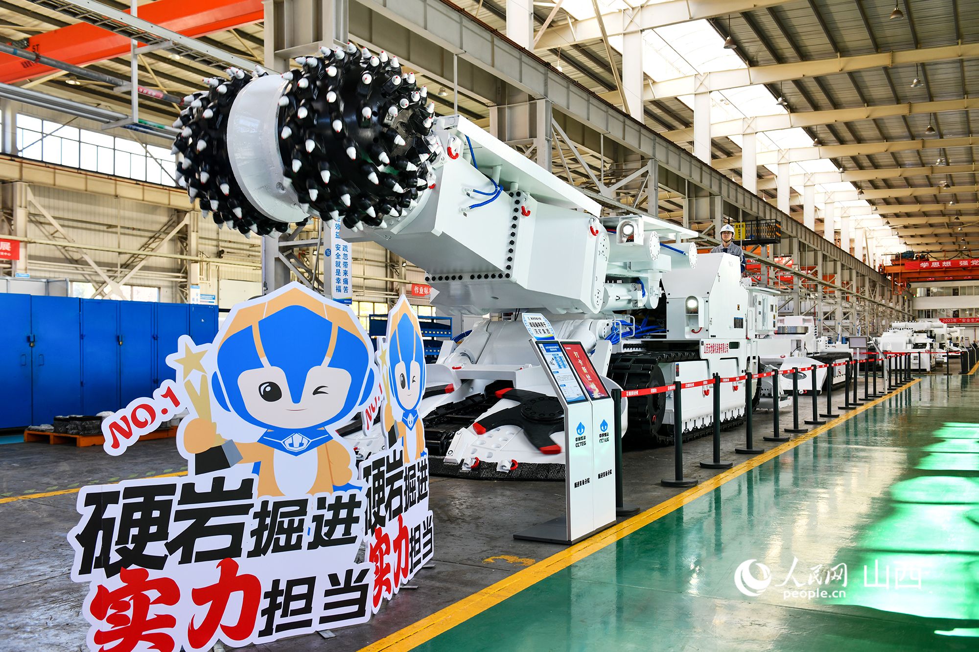 太原研究院彩虹基地生產(chan) 車間陳列的巷道掘進裝備。人民網記者 焦搏文攝