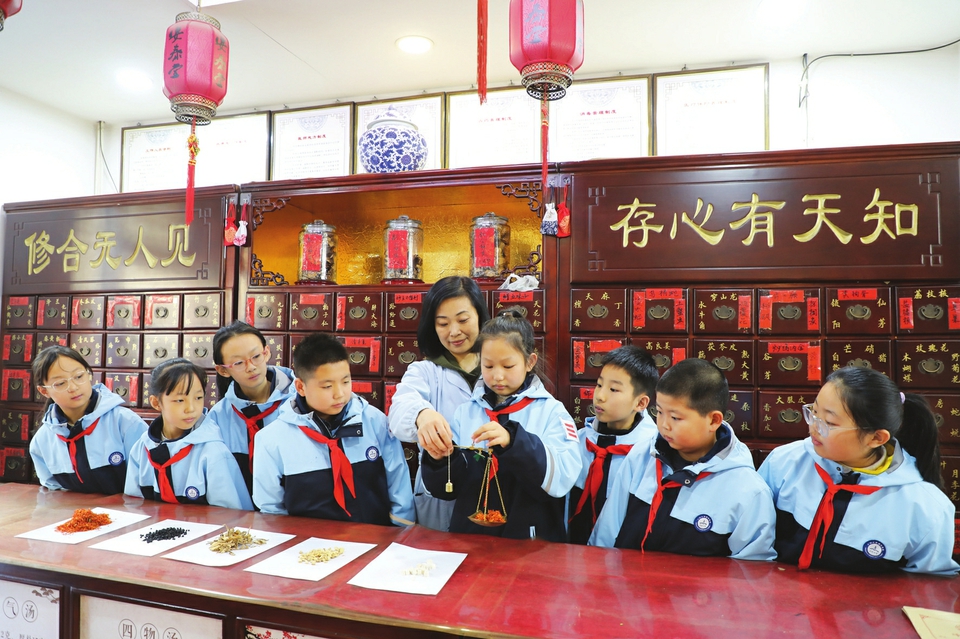 12月7日,陽泉市城區小陽泉北社區黨(dang) 委聯合陽泉市實驗小學,開展了“學習(xi) 草藥知識、感受中醫魅力”課外實踐活動。孩子們(men) 來到藥店,通過識別中草藥、稱量、加工中草藥材等具體(ti) 活動,近距離體(ti) 驗中醫藥傳(chuan) 統文化特色,感受中醫藥魅力。圖為(wei) 孩子們(men) 在藥劑師的指導下稱量中草藥。(張春林攝)
