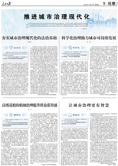 城市治理體(ti) 係和治理能力現代化是國家治理體(ti) 係和治理能力現代化的重要內(nei) 容。習(xi) 近平總書(shu) 記指出:“推進國家治理體(ti) 係和治理能力現代化,必須抓好城市治理體(ti) 係和治理能力現代化。”總書(shu) 記在上海考察時強調:“把增進民生福祉作為(wei) 城市建設和治理的出發點和落腳點”。本期觀察版圍繞如何提高城市治理法治化、科學化、精細化、智能化水平,更好推進城市治理現代化、全麵踐行人民城市理念進行探討。