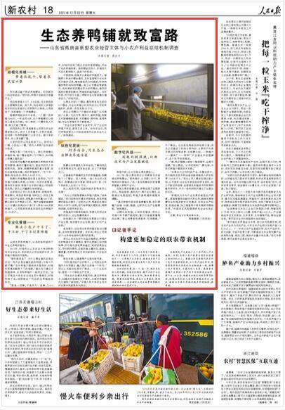 發展特色產(chan) 業(ye) 要把廣大小農(nong) 戶納入產(chan) 業(ye) 鏈條。目前,全國小農(nong) 戶數量占到農(nong) 業(ye) 經營主體(ti) 的98%以上。要建立和完善現代農(nong) 業(ye) 同小農(nong) 戶利益聯結機製,讓小農(nong) 戶通過勞動、服務等各種形式和現代農(nong) 業(ye) 聯結在一起,保障小農(nong) 戶有穩定、可靠的收入來源。高唐縣發展鴨產(chan) 業(ye) 帶動小農(nong) 戶的鄉(xiang) 村實踐再次證明,強產(chan) 業(ye) 、興(xing) 業(ye) 態,構建更加穩定的聯農(nong) 帶農(nong) 機製,把增加農(nong) 民收入各項舉(ju) 措落在實處、細處,就能讓鄉(xiang) 親(qin) 們(men) 有越來越多的幸福感、獲得感。