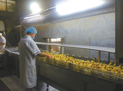 從(cong) 孵化到養(yang) 殖,從(cong) 飼料到屠宰,榮達公司每個(ge) 環節都嚴(yan) 格控製,著力打造高質量鴨肉品牌。“要讓消費者吃得營養(yang) 、吃得健康。”牛廣峰說。在優(you) 質肉鴨新品種培育方麵,榮達公司建成了標準化育種場,主要用於(yu) 優(you) 質雙黑白羽肉鴨選育,實現孵化場——養(yang) 殖戶——屠宰廠——飼料廠產(chan) 業(ye) 鏈運作經營模式,各個(ge) 環節協同推進。