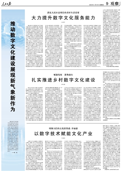 當前,大力提升數字文化服務能力,讓人們(men) 在數字時代享有更加充實、更為(wei) 豐(feng) 富、更高質量的精神文化生活,需要在以下幾方麵著力。
