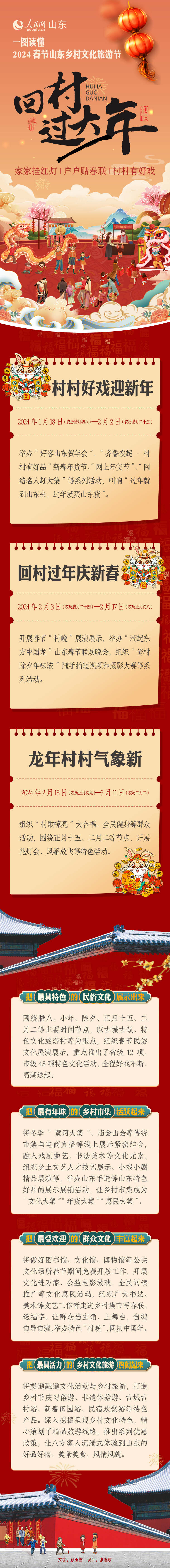 人民網濟南1月17日電 (喬(qiao) 姝)臘八將至,年味漸濃。1月18日(農(nong) 曆臘月初八)至3月11日(農(nong) 曆二月二),以“家家掛紅燈,戶戶貼春聯,村村有好戲——回村過大年”為(wei) 主題的2024春節山東(dong) 鄉(xiang) 村文化旅遊節即將舉(ju) 辦。