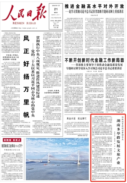 人民日報頭版關注:湖南多舉措發展文旅產業