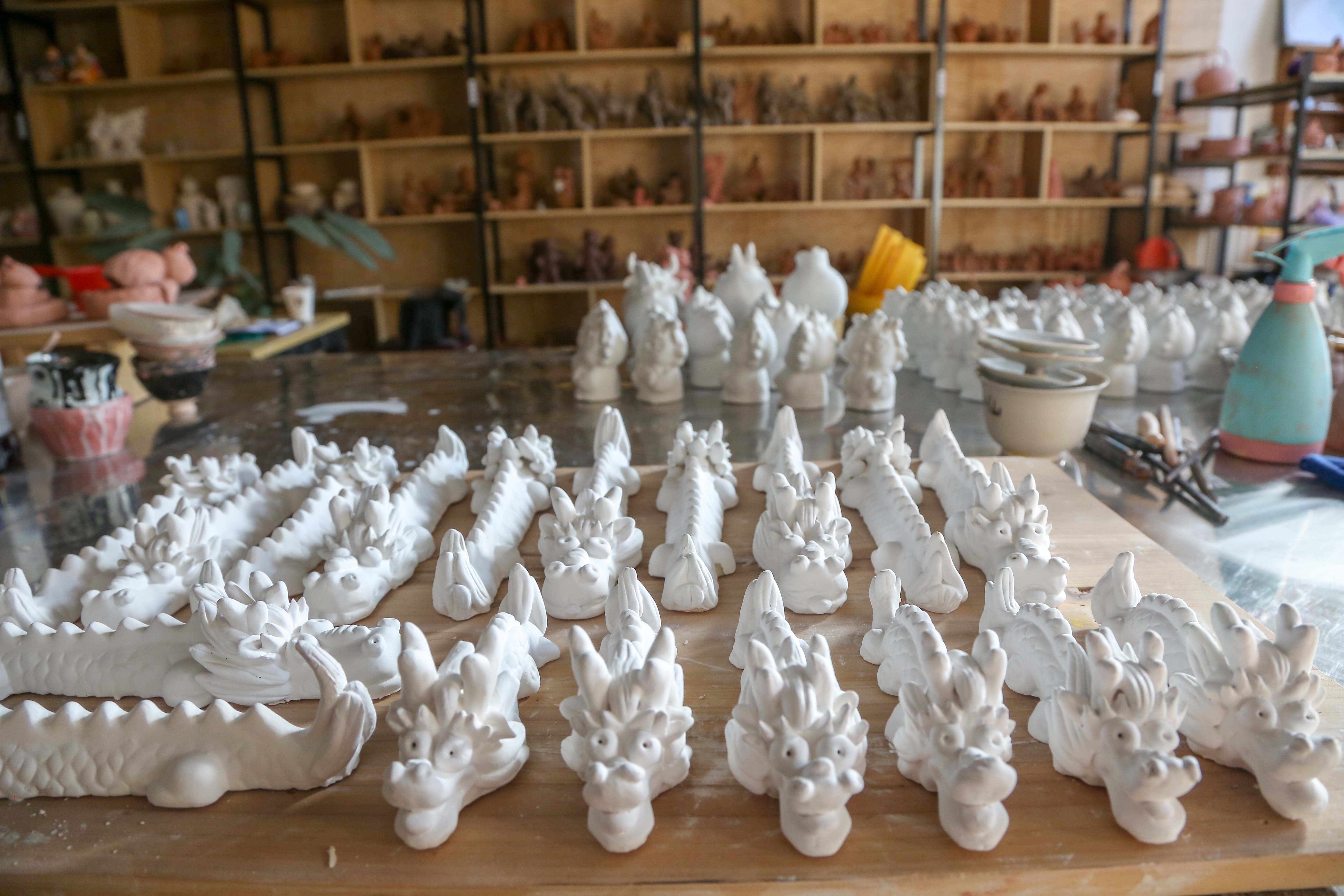 “這件泥塑取名‘一條好龍’,寓意新的一年萬(wan) 事順遂;這件叫‘大嘴龍’,寓意風調雨順;這是十二生肖龍……”隨著龍年春節的臨(lin) 近,史月明創作了一係列以龍為(wei) 主題的泥塑作品。
