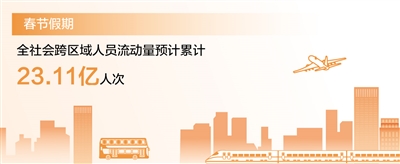 春節假期全社會跨區域人員流動量預計累計23.11億人次