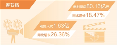 春節假期電影市場的火熱,為(wei) 假日增添了文化味,烘托了歡樂(le) 祥和的節日氛圍,進一步鞏固了電影產(chan) 業(ye) 回升向好態勢。
