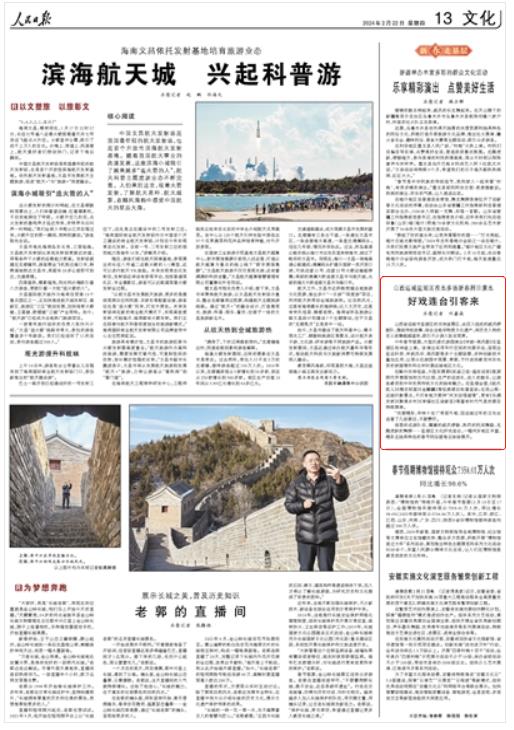 在解州關(guan) 帝祖廟,大型實景劇《武廟之祖·盛世迎賓》複原明代甲胄服飾和古代儀(yi) 規,莊嚴(yan) 的迎賓禮、動人的鼓樂(le) ,讓遊客感受到中華優(you) 秀傳(chuan) 統文化的獨有魅力。在鹽湖會(hui) 堂,《趙氏孤兒(er) 》《精忠報國》《金麒麟》等經典劇目輪番登場;在嵐山根·運城印象景點,不僅(jin) 有地方劇種“河東(dong) 說唱道情”,更有《樂(le) 滿農(nong) 家》《醉美鄉(xiang) 村》《幸福社區綻新容》等富有時代氣息的劇目持續展演。