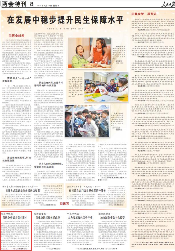 人民日報丨朱小坤代表:幫扶企業招才引才用才