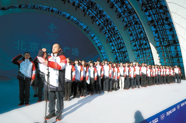 2021年元旦期間,北京頒獎廣場剛剛落成,團隊在舞台上舉(ju) 行誓師大會(hui) 。