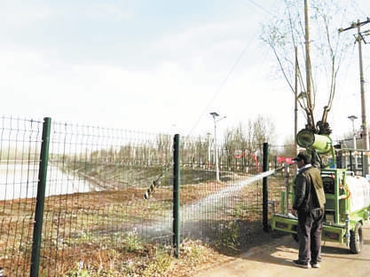 為(wei) 免施工揚塵,灑水車隨時跟進灑水。