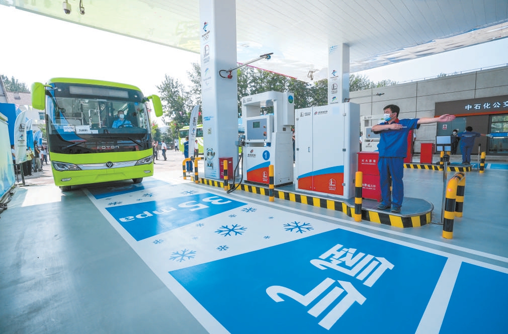 圖為(wei) 參與(yu) 了北京冬奧會(hui) 服務保障任務的中國石化延慶慶園街加氫站。本報記者 武亦彬攝
