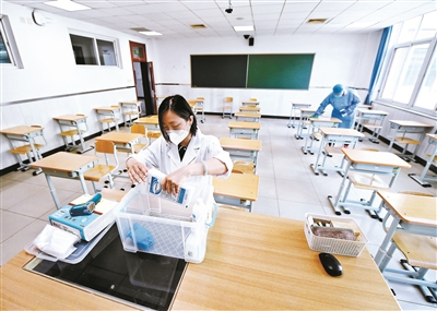今年高考期間,作為(wei) 常規考點之一的東(dong) 直門中學考點將設置13個(ge) 常規考場、3個(ge) 備用考場。熊勁介紹,當遇到發熱考生時,考點考務人員會(hui) 立即將發熱考生通過專(zhuan) 門進口帶進考點內(nei) 的隔離室,進行健康觀察。為(wei) 了防止交叉,考點為(wei) 發熱考生設置專(zhuan) 門進入考點的通道。