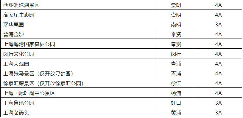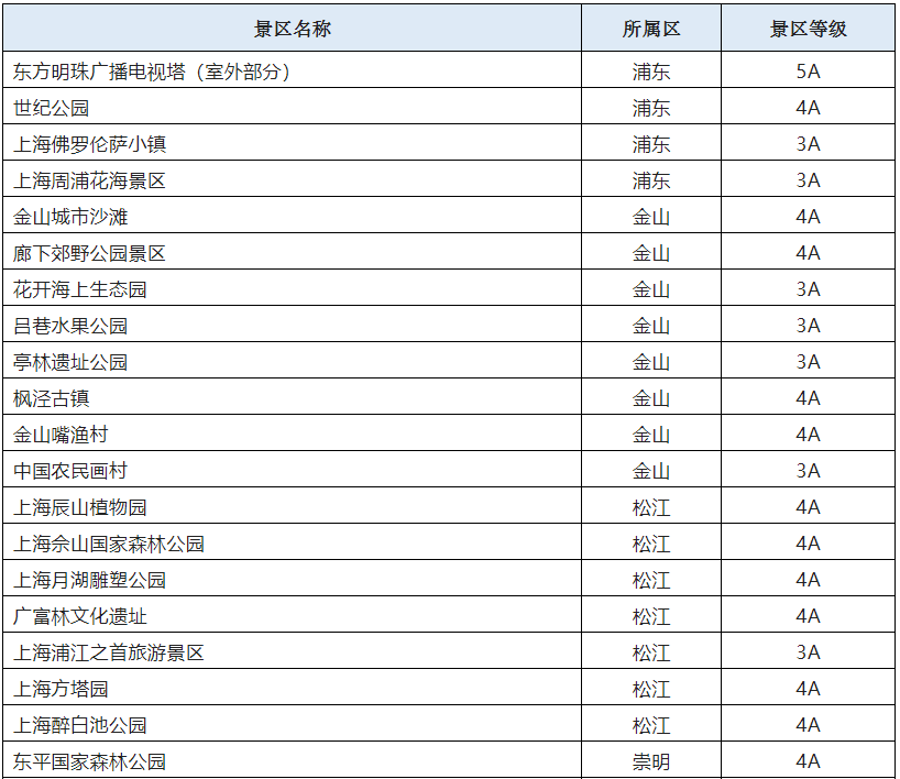 恢複開放的32家A級旅遊景區(圖片來自上海市文旅局,央廣網發)