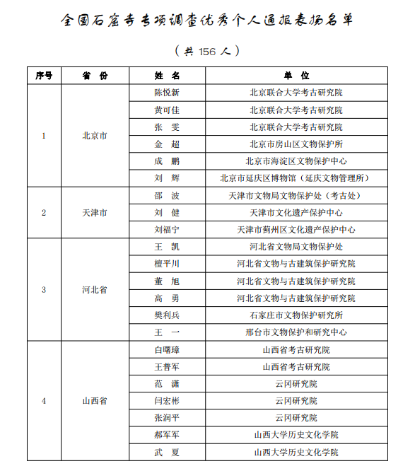 國家文物局通報表揚全國石窟寺專項調查先進單位和優秀個人